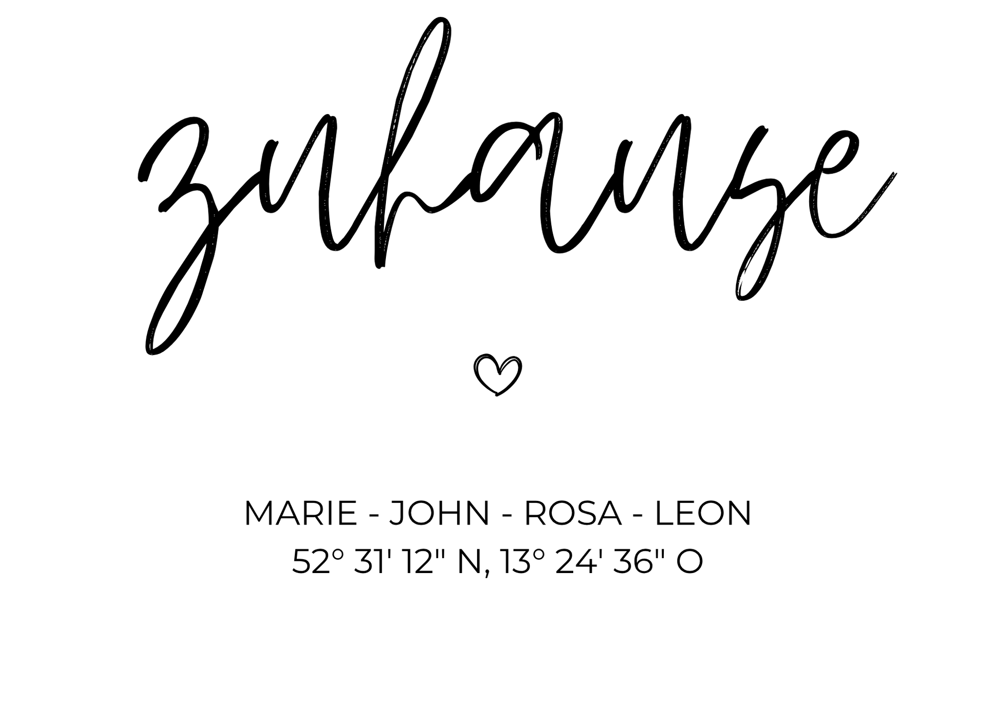 Schaffen Sie sich ein persönliches Kunstwerk für Ihr Zuhause, das die Einzigartigkeit Ihrer Familie widerspiegelt. Mit dieser personalisierten Lösung integrieren Sie die Namen Ihrer Liebsten in ein individuelles Design, das Ihre Wohnräume mit persönlicher Bedeutung erfüllt. Ein durchdachtes Geschenk, das emotionale Verbundenheit visuell zum Ausdruck bringt.
